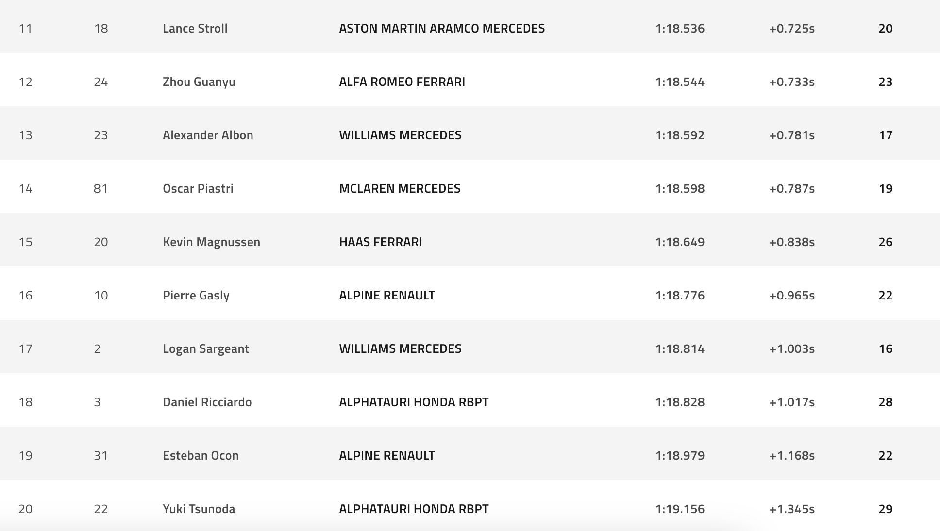 Η νέα μορφή των προκριματικών που υποχρέωνε τους πιλότους να αγωνιστούν με σκληρή γόμα στο Q1, με μεσαία στο Q2 και μαλακή στο Q3, ανακάτεψε αρκετά την τράπουλα δίνοντας την ευκαιρία στις Alfa Romeo των Βάλτερι Μπότας και Γκουανιού Ζου να πλασαριστούν στην 5η και 7η θέση αντίστοιχα.