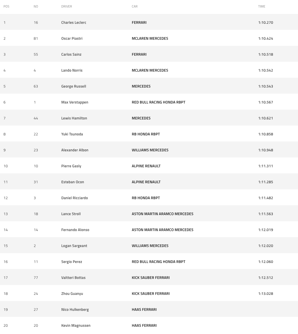 Παρακάτω το grid εκκίνησης του Grand Prix:
