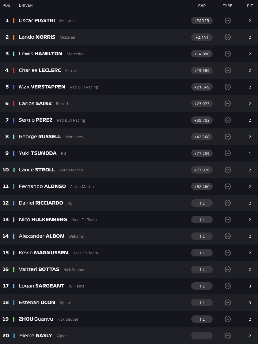 Υπακούοντας πιστά τις οδηγίες της McLaren, ο Λάντο Νόρις παραχώρησε στον teammate του την πρωτοπορία που ανέκτησε στο τρίτο stint και πέρασε δεύτερος την γραμμή τερματισμού στην Ουγγαρία.